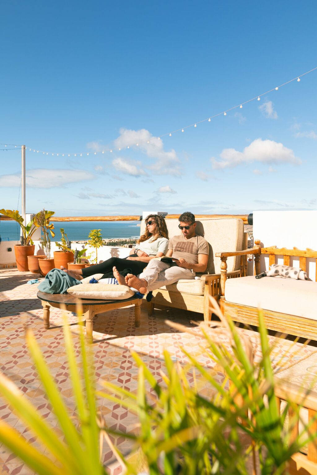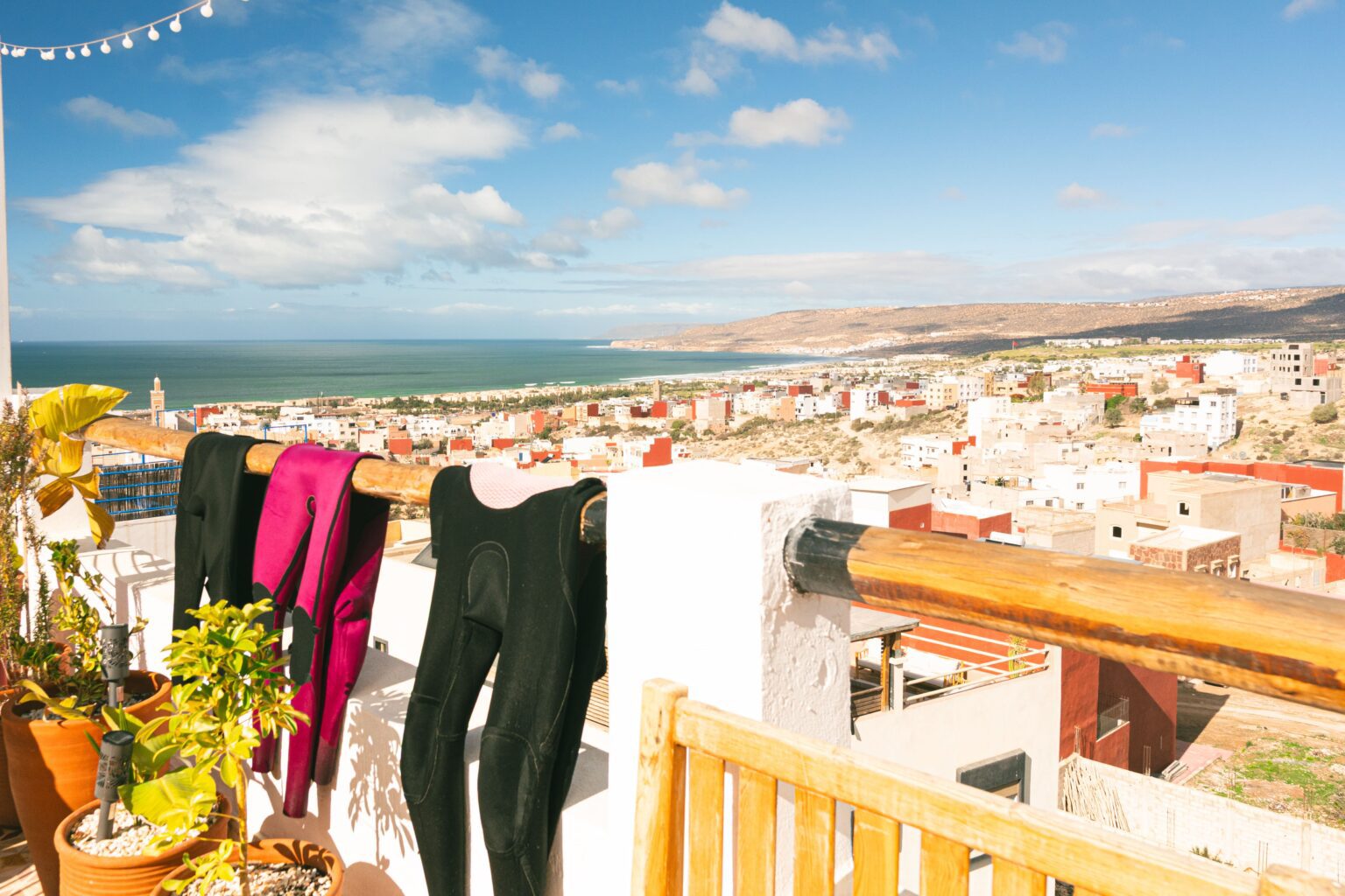 Stay at our surf camp Tamraght in the heart of Morocco’s surf paradise. Located near Taghazout Bay, our accommodation offers comfortable rooms, rooftop ocean views, and everything you need for your surf camp Morocco experience.