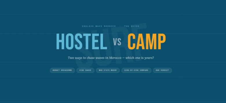 You’re planning your Morocco surf trip. You’ve found Taghazout on the map, you’ve watched the videos, you’ve seen the waves. Now comes the question that every surfer hits before they book: surf hostel or surf camp?