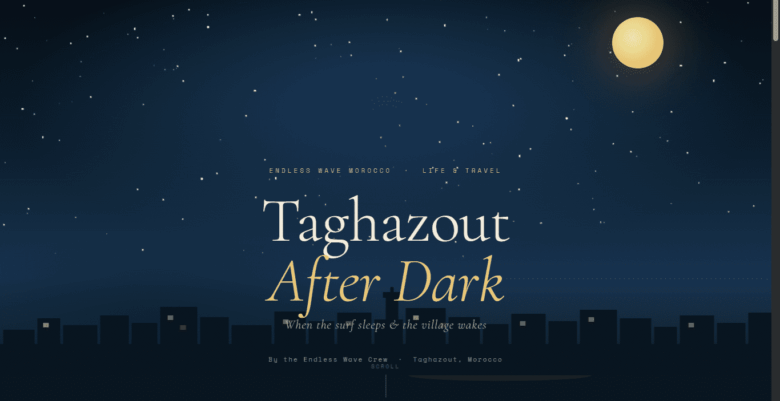 Taghazout After Dark — Endless Wave Morocco Endless Wave Morocco · Life & Travel TaghazoutAfter Dark When the surf sleeps & the village wakes By …